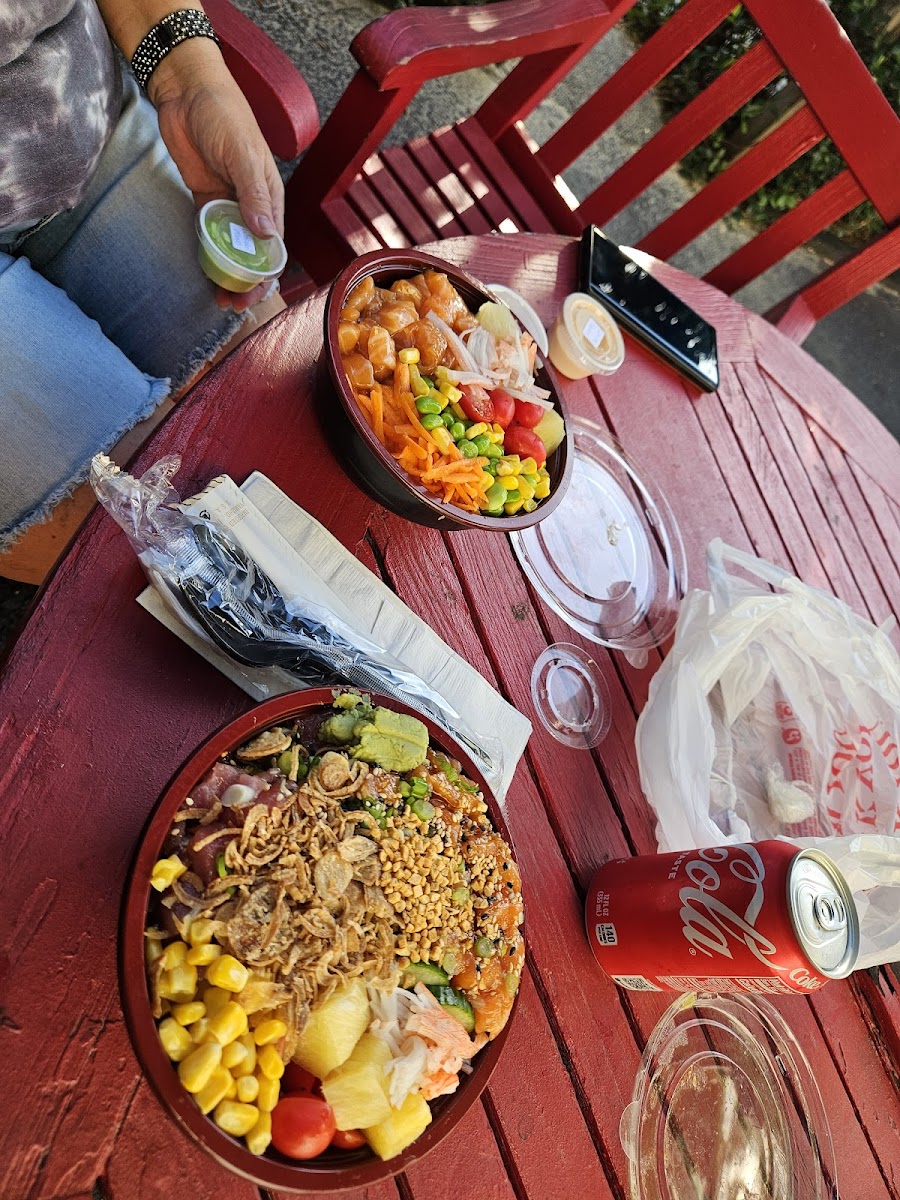 RIDICULOUSLY delicious Poke bowls! The fish was incredible — fresh, flavorful, and they’re so generous with their portions. The whole bowl was full of flavor and so refreshing. The service is also outstanding, my husband asked for both salmon and tuna in his “Fire” bowl and they forgot and only gave him tuna. We sat down outside in the courtyard before we noticed and before we were even able to start eating, someone from the restaurant found us and brought us out some salmon! So kind and thoughtful, it’s stuff like this that makes you can’t wait to come back. Not to mention the amazing food! We will absolutely be back soon!